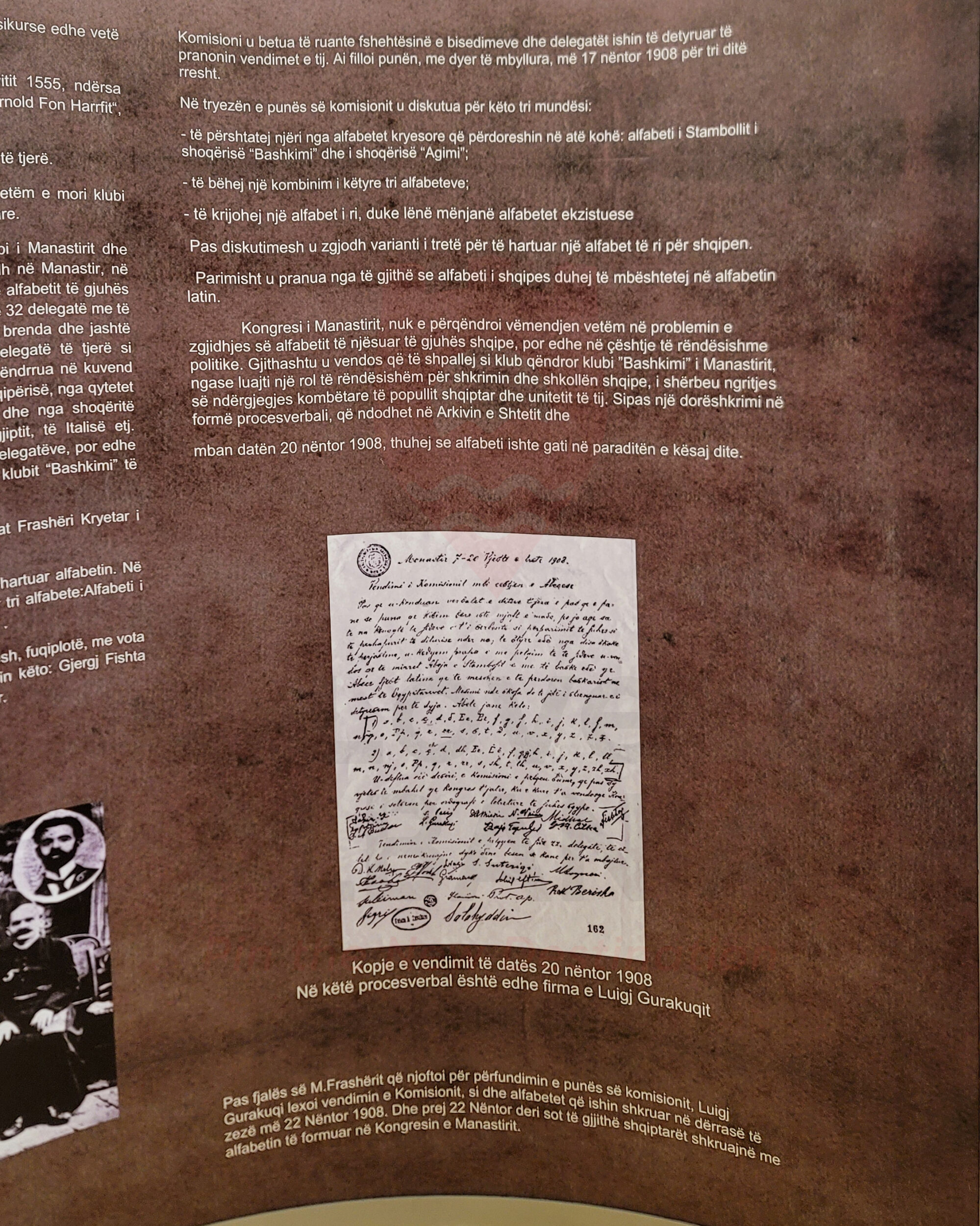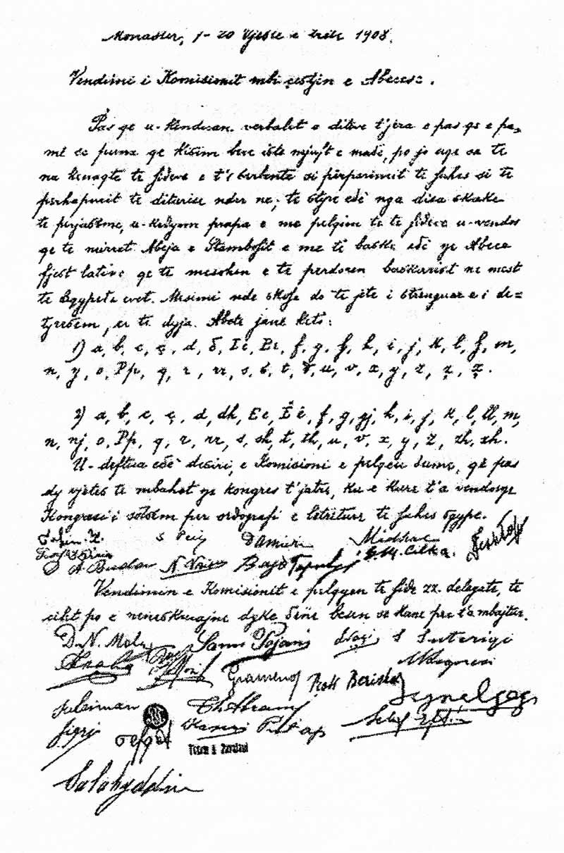 The commission ultimately proposed: the adoption of the Latin alphabet as the basis for Albanian writing, allowing two versions (Bashkimi + a reformed Istanbul version). This decision was accepted enthusiastically. The shout “Long live the alphabet!” became the most emotional moment of the Congress.
