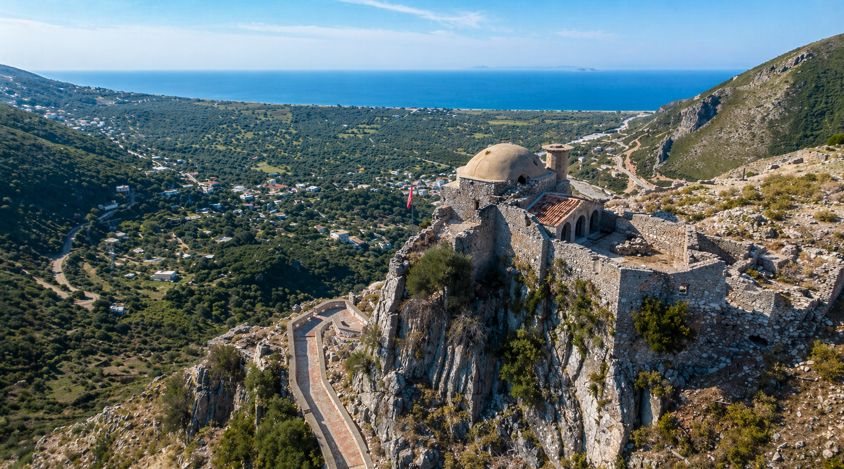 The origins of the castle date back to ancient times, with later reconstructions during the Byzantine and Ottoman periods. Due to its strategic hilltop location, it played a key role in controlling the surrounding territory and coastline.