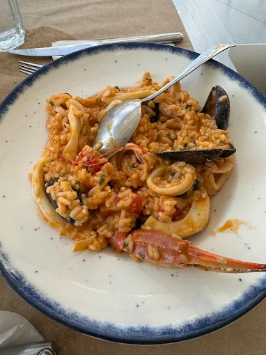 Da Sea’s Flavour Restaurant, il mare non è solo uno sfondo — è il cuore della cucina. Il menu celebra l’abbondanza costiera di Ksamil, con piatti che esaltano ingredienti freschissimi e ricette tradizionali tramandate di generazione in generazione. I clienti lodano costantemente il risotto ai frutti di mare, il branzino alla griglia e le linguine ai frutti di mare — ogni boccone sprigiona il gusto autentico dello Ionio. Tra le specialità spiccano la zuppa di gamberi, le cozze e le spettacolari linguine con chela di granchio, tutte preparate con cura e servite con eleganza. È il tipo di ristorante dove anche il semplice calamaro alla griglia diventa un’esperienza culinaria memorabile, soprattutto se accompagnato da un fresco calice di vino bianco albanese.