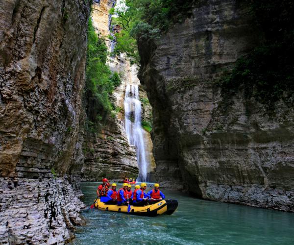 Located near Skrapar, about one hour from Berat, Osum Canyon is the most famous rafting destination in the country. The canyon walls rise dramatically on both sides, creating a spectacular natural corridor where waterfalls cascade into the river during spring.