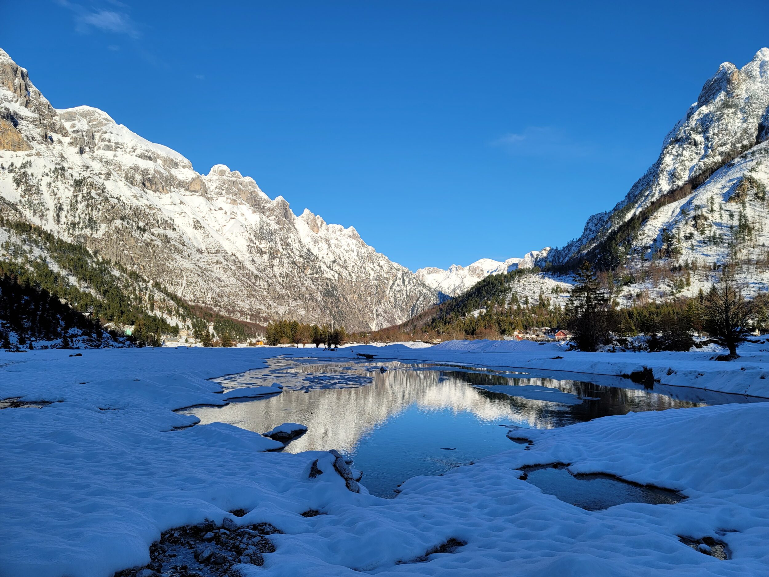 Në dimër, Valbona shndërrohet në një mrekulli alpine të mbuluar me borë. Bora mund të zgjasë për muaj të tërë, duke e kthyer luginën në një peizazh të qetë e të bardhë, ideal për ski malore dhe trekking dimëror. Në verë, klima mbetet freskuese, duke e bërë Valbonën një nga destinacionet më të mira malore në Shqipëri.