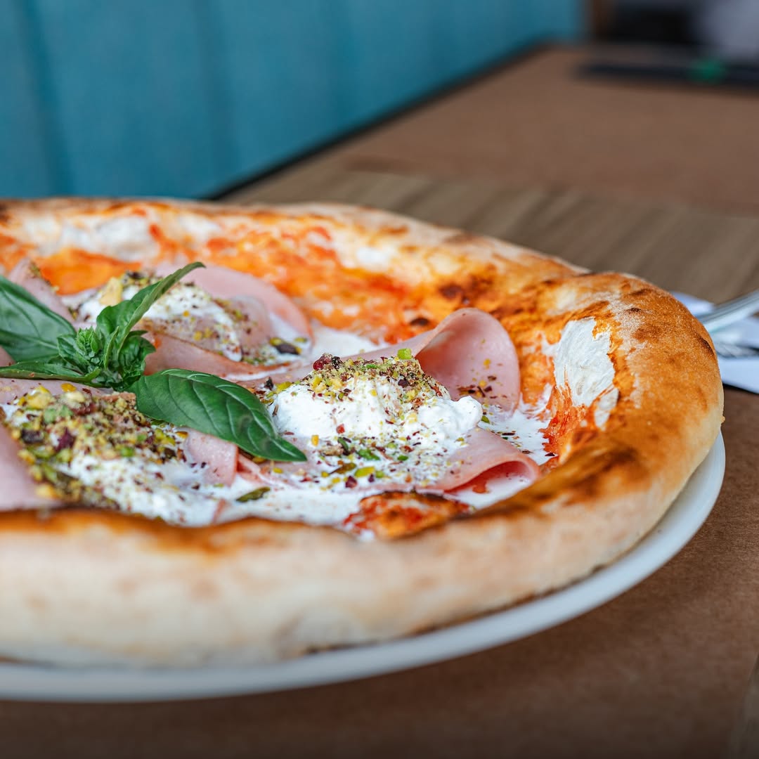 Pistacchiosa – krem pistaku, burrata dhe mortadella (duhet provuar patjetër!)