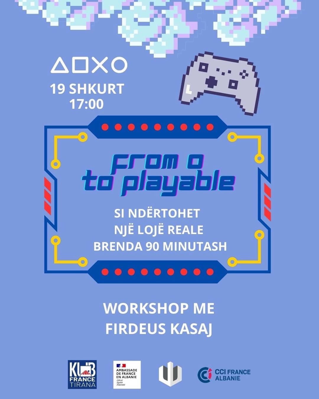 An interactive workshop for gaming and technology enthusiasts. “From 0 to Playable,” led by Fird eus Kasaj, presents the process of building a real game within 90 minutes, offering practical insights into game development and the digital creative industry.