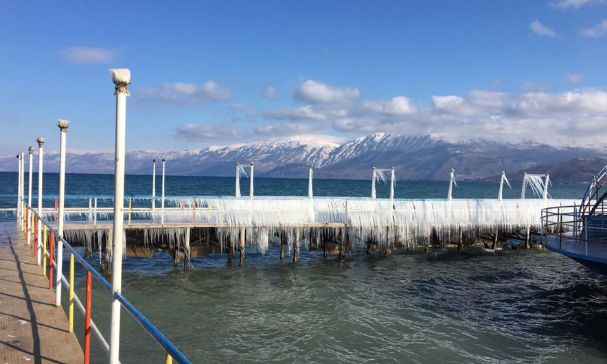 - Lake Ohrid (Pogradec) – During the coldest days, parts of the lake freeze, reflecting the colors of the sky and the surrounding mountains. An ideal place for photos combining water, snow, and the city of Pogradec in the background.