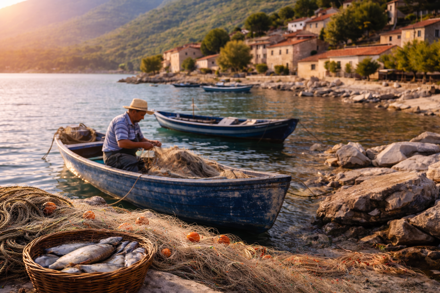 Zogaj has historically been known as a fishermen’s village. Fishing remains the backbone of the local economy, with traditional wooden Liburn-type boats still used by some locals. One of the most unique aspects of the village is the long-standing tradition of shared fishing, where the daily catch is divided equally among fishermen — a reflection of the community’s strong social bonds.