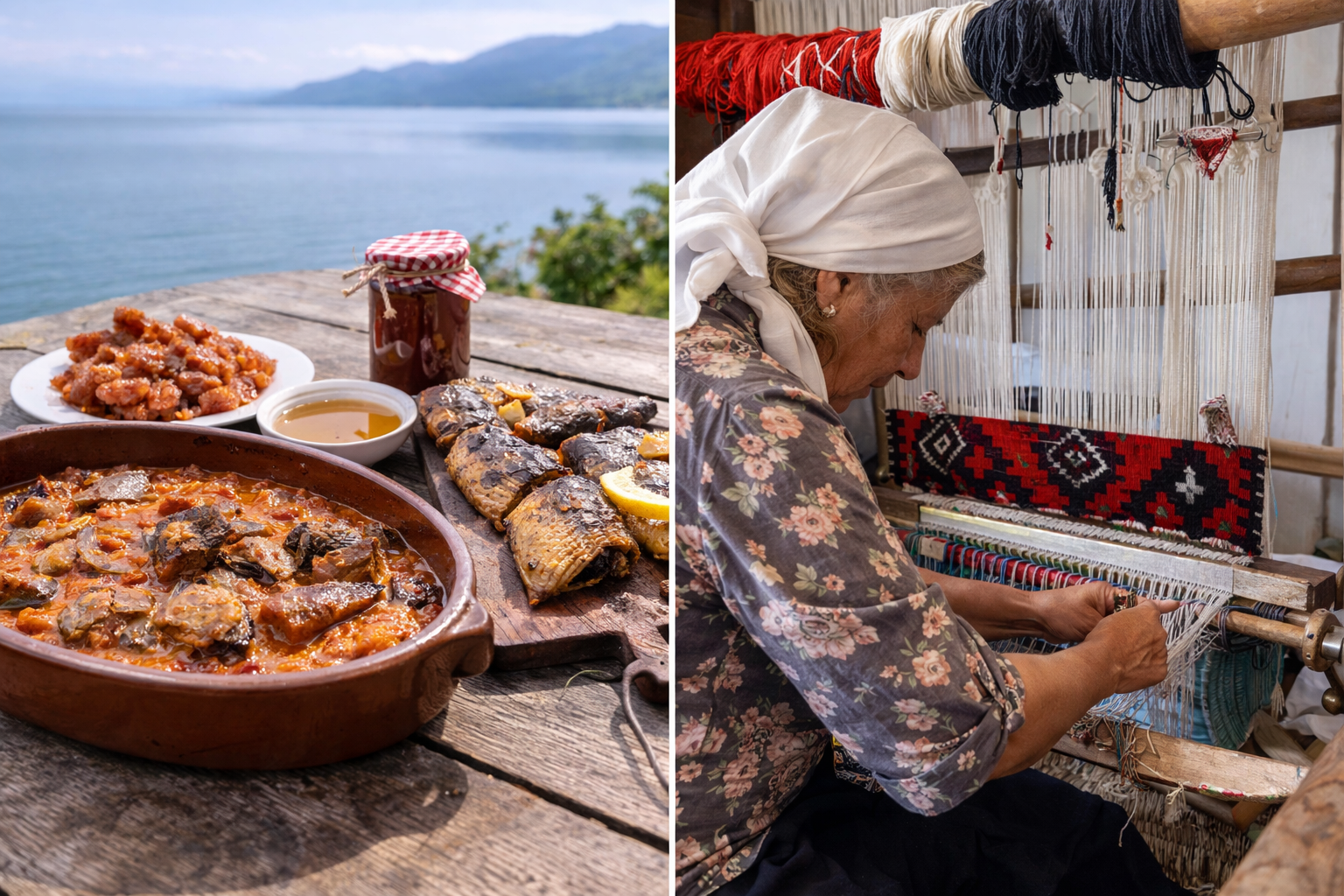 Beyond fishing, Zogaj preserves a rich tradition of culinary and artisan practices that reflect the lifestyle of the lake communities around Lake Shkoder. Local cuisine is strongly connected to the lake’s resources, with dishes such as tavë krapi (baked carp prepared in clay), eel cooked on tiles, and putarka (cured fish roe) forming part of the village’s gastronomic identity. These recipes are often prepared using traditional methods passed down through generations, accompanied by local products like sage honey and homemade mulberry jam.